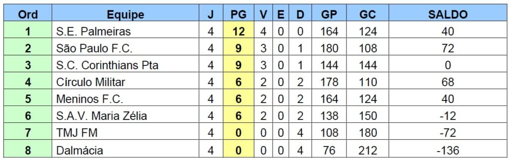 Dalmácia FM recebeu a equipe da S.E. Palmeiras, e as parciais anotaram 2×10, 4×8, 4×8, 7×5, 6×6 e 6×6 com o placar final de 29 x 43 para o Palmeiras.