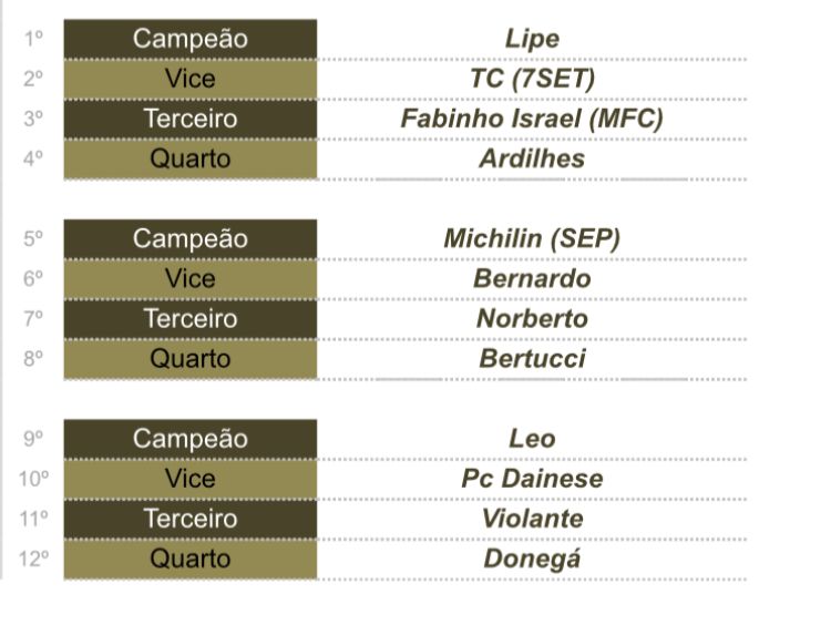 Aconteceu neste dia 23 de fevereiro o Challenger na sede do Dalmácia, e o atleta Felipe do Dalmácia, venceu o torneio, que contou com a presença de 12 atletas.