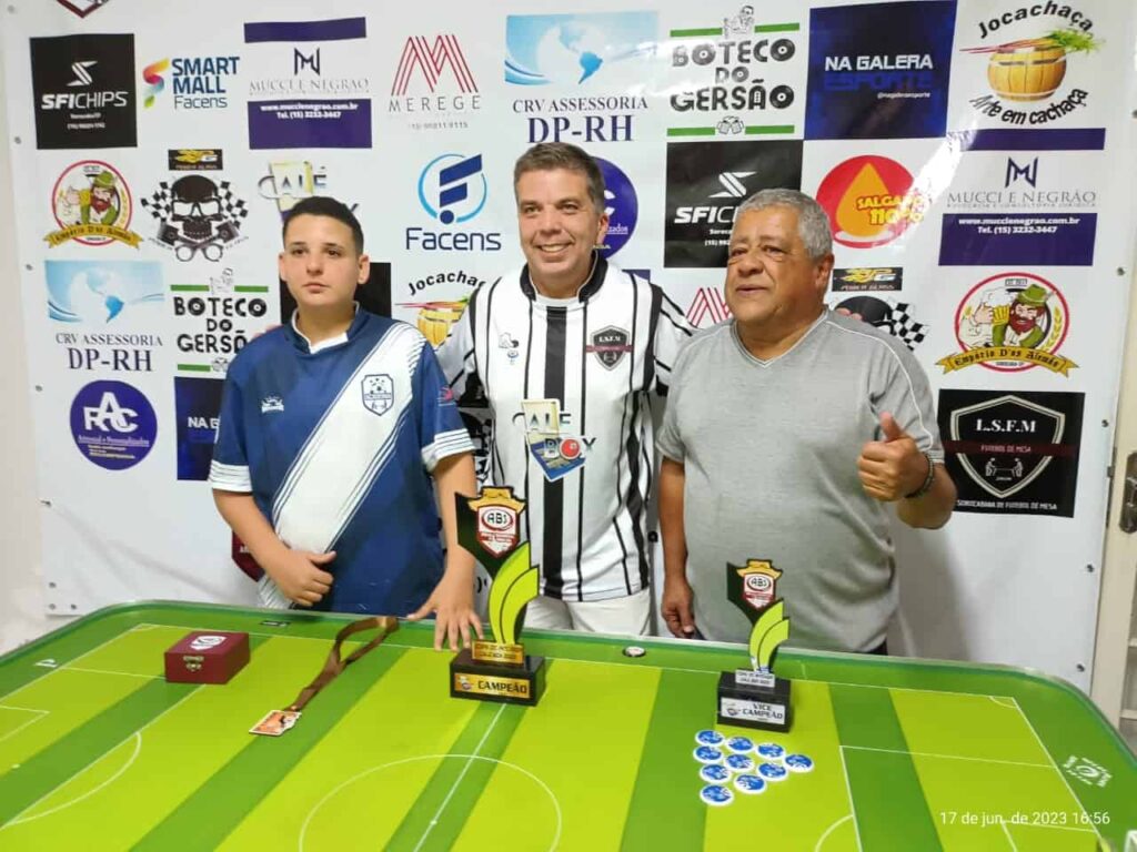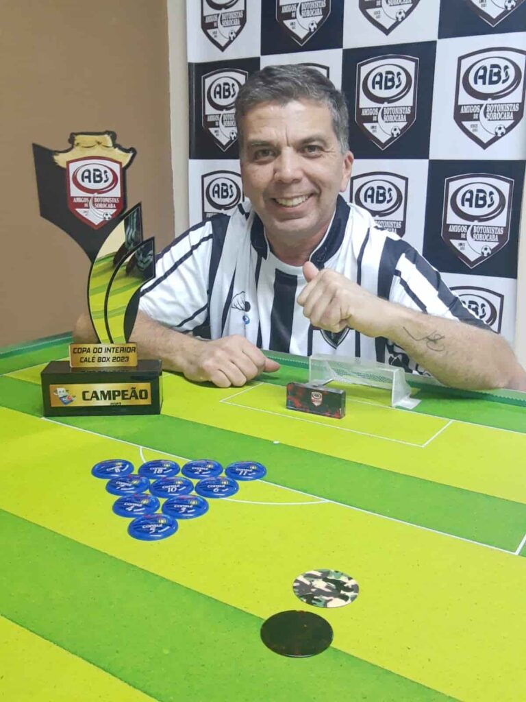 O sorocabano Fernando Martins segue impossível nas mesas de futebol de botão. Pelo menos no ABS (Amigos Botonistas de Sorocaba), ele não está dando chances a ninguém. Prova disso é que, no fim de semana, foi a vez de conquistar a Copa Interior/Calé Box de Futebol de Mesa – o terceiro título seguido na temporada de 2023.