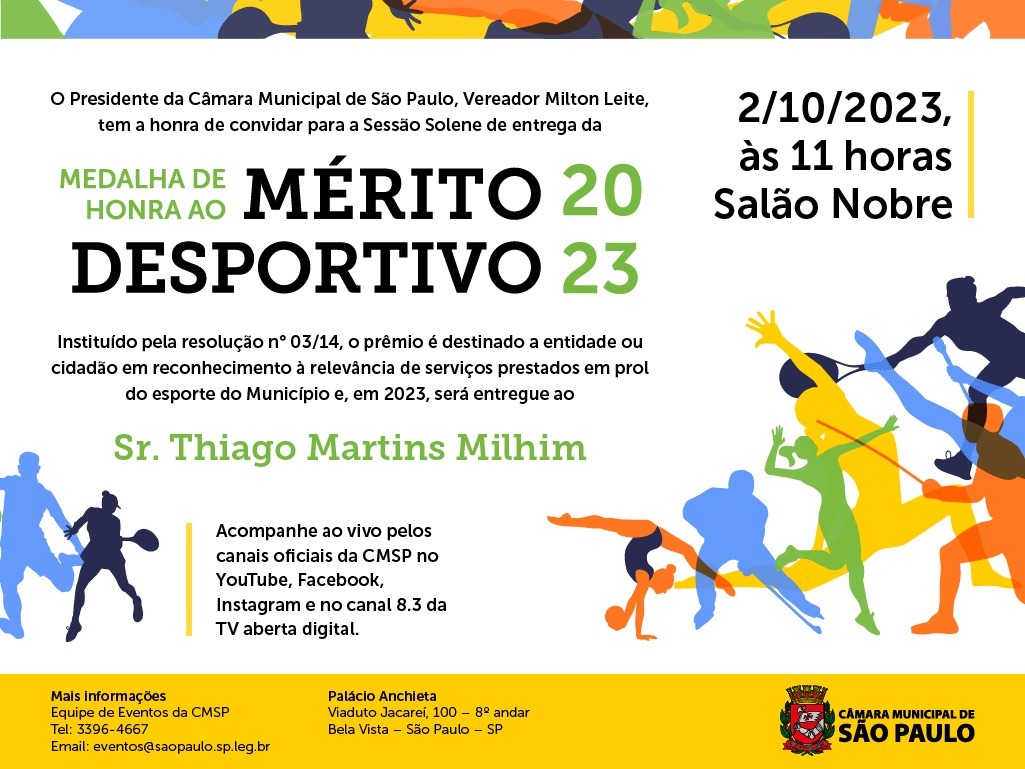 Nesta segunda feira dia 2 de outubro estivemos na Câmara Municipal de São Paulo, representando a nossa comunidade, do futebol de mesa na homenagem com a entrega da medalha do mérito esportivo da cidade de São Paulo, ao Dr. Thiago Martins Milhim – Secretário Nacional de Esporte Amador, Educação e Inclusão Social, estivemos com as autoridades, do esporte em todos os seus níveis.